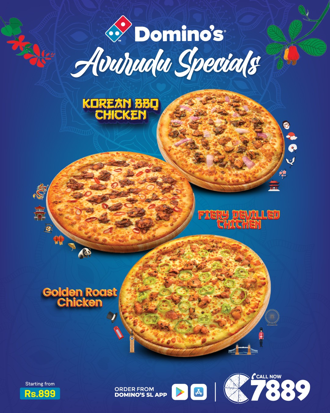 New flavors for New Years! Add our Avurudu Special Pizzas to your Avurudu feasts for a much cheesier experience! Starting at just Rs.899. Order now: Delivery, Takeaway, Dine-In; App - http://bit.ly/getdominospizza Mobile Website - https://m.dominoslk.com/ Call us via 7889 All outlets open from 11 AM - 11 PM