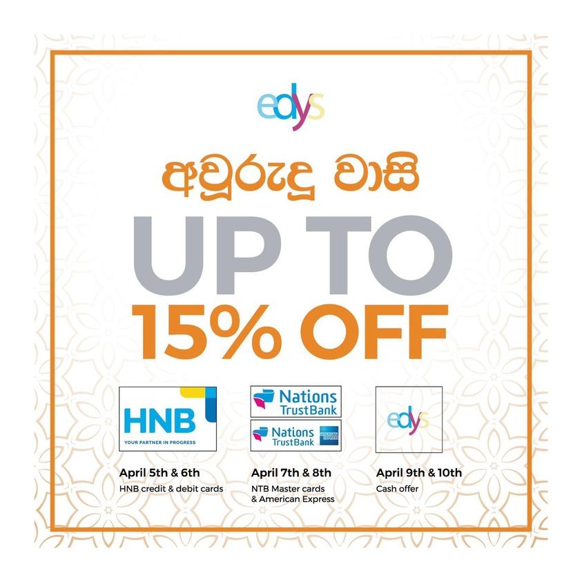 15% OFF at EDYS.lk with HNB Bank Credit Cards